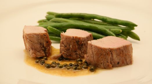 Mușchiuleț De Porc Cu Fasole Verde Şi Sos De Piper Verde Şi Citrice