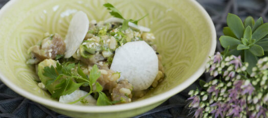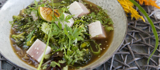 Salată de orez sushi cu ton, ridichi, avocado și sos thai