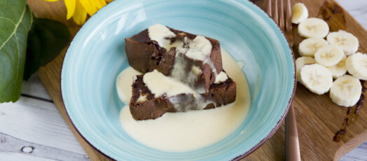 Pâine de banane cu ciocolată, sabayon din tokaji, boabe de tonka