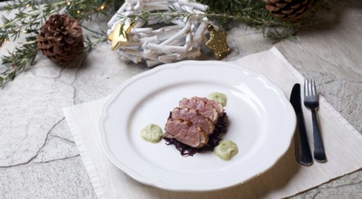Piept De Raţă Cu Varză Roşie, Prune Uscate Şi Spumă De Dovlecel