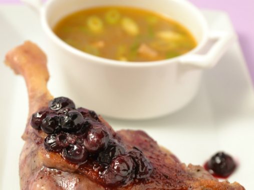 Rață Confiată Pe Tartă De Praz Sau Ceapă, Cu Consome De Rață Si Ciuperci Shitake.