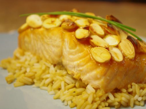Somon În Crustă De Migdale Cu Sos De Miere Şi Muştar