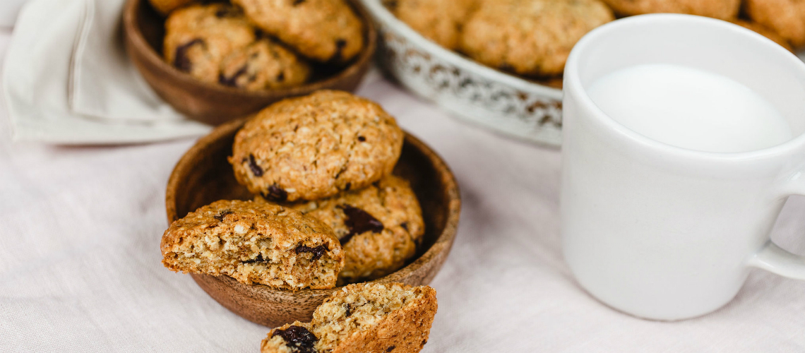 Amestecăm ingredientele uscate într-un vas și le adăugăm treptat la mixul cu unt, amestecându-le până când se adună aluatul. La sfârșit mai adăugăm ciocolata mărunțită.