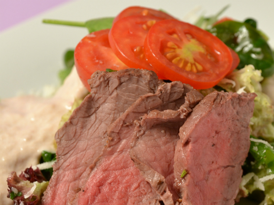 300 g muşchi de vită se curăţă şi apoi se pun la prăjit într-o tigaie în care s-au încins cca 10 ml ulei de măsline. Se ţine la prăjit atât cât să prindă o culoare maronie pe exterior. După aceasta, se pune în folie de aluminiu, împreună cu 2 ramuri de rozmarin verde. Se va ţine la cuptor 20 de minute, la 190gC. În tot acest timp, într-un blender se pun 100 g ton conservă, 10 g anchoa, 10 ml ulei de măsline, 100 g iaurt, sare şi piper şi se mixează foarte bine până când se obţine un sos catifelat si omogen.