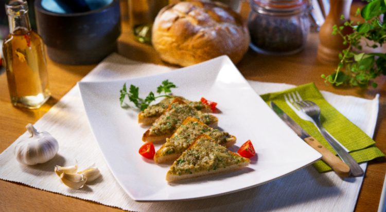 Carnea se pune la prăjit în ulei încins după ce a fost sărată în prealabil. Se lasă până când devine crocantă în exterior şi cremoasă în interior. Spre final se adaugă o linguriţă de sos de soia şi seminţe de susan. Pe durata prăjirii, într-un bol facem maioneza din gălbenuşurile fierte, cel crud, sare şi 5 linguri de ulei. Maioneza obţinută se amestecă cu zeama de la o lămâie, de la un lime şi sucul de la o jumătate de portocală. Amestecăm şi apoi adăugăm usturoiul ras mic, sare şi piper, şi din nou amestecăm obţinând sosul Citrus ayoli. Salata tăiată julieni mare se amestecă delicat cu sosul ayoli, sare şi piper. Croissantelor li se fac incizii, pe lung, lateral şi se umplu cu salată de ayoli şi carne prăjită. Se fac 2 ouă din care se păstrează gălbenuşul. Pe o farfurie dreptunghiulară se aşează gălbenuşul prăjit, bolurile cu dressing ayoli, sosul de soia cu seminţe susan şi croissontele sandwich.