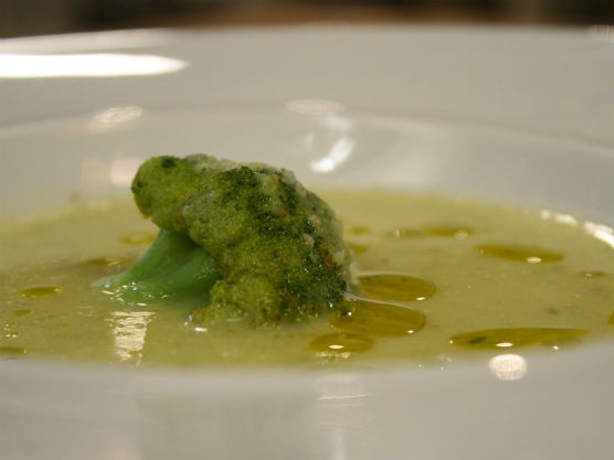 Se pune la prăjit pentru câteva min ceapa, se adaugă prazul tăiat,un căţel de usturoi, în 4-5 linguri ulei de măsline. Se adaugă numai tulpinile de brocoli tăiate bucăţele şi se fierbe totul timp de 10 min. Se adaugă treptat supa de legume caldă, puţină sare şi se lasă la fiert, acoperit cu un capac timp de 10 min. Se adaugă bucăţile de brocoli şi cimbrişorul, se continuă fierberea tot cu capac timp de 10 min. După ce s-a fiert se mixează cu un blender, se repune totul în oală şi se adaugă laptele sau smântâna.