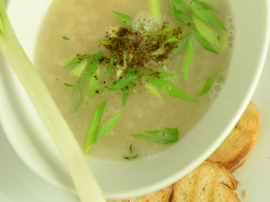 Peştele se pune la fiert cu ceapa tocată mărunt, foarte puţină sare şi piper mai mult. În supă se adaugă fasolea şi se dă într-un clocot. O treime din ea se scoate din supă şi împreună cu peştele se procesează în blender până când se obţine o cremă fină ca smântâna. Aceasta se toarnă uşor şi treptat peste supa lăsată pe foc şi se amestecă încontinuu astfel încât crema de fasole şi peştele să se desfacă să se încorporeze perfect în supa de fasole. Se obţine o supă densă dar nu cremă. Se adaugă apoi cimbrul, se mai lasă 5 min la foc mic. Supa se aşează în bolul pus împrealabil pe farfurie suport. Deasupra se adaugă rondele fine de ceapă verde. Tot pr farfurie suport se aşează crutoanele de pâine sau pâine prăjită.