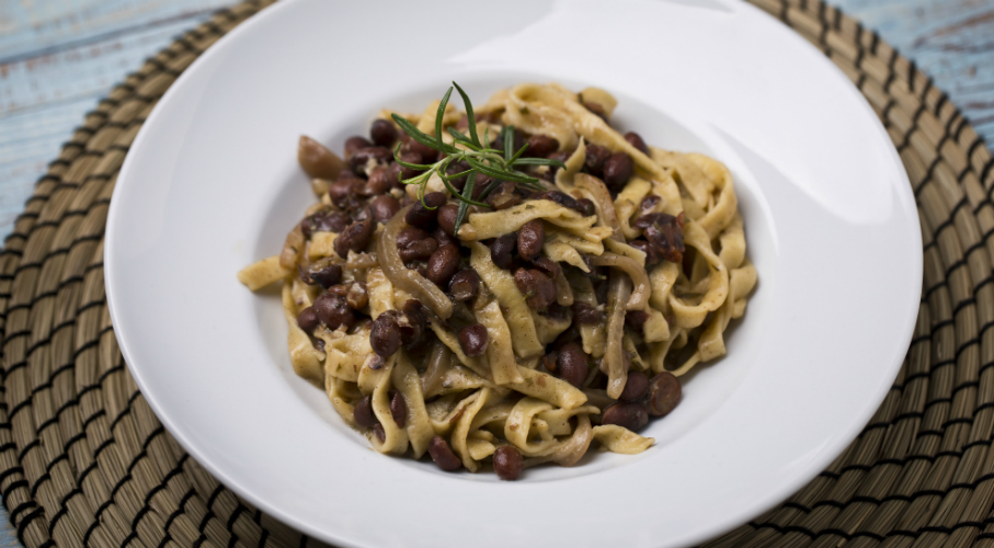 Se amesteca faina cu oua. Pina cand se face o coca catifelata. Se trece coca in masina pina se obtine tagliatellele. Se caleste soricul taiat fasii. Se stinge cu vin alb. Se adauga usturoi taiat foarte marunt. Se adauga apa clocotita. Se lasa sa fierbe. Se stinge cu vin alb. Se adauga rozmarin taiat marunt. Si se lasa sa fierbe pina cand se face aprope de crema, o parte din fasole trebuie sa se rupe si o parte sa ramane intreaga. Se fierb pastele. Se amesteca cu fasolele. Se lasa cateva minute impreuna pe foc tare . Se servesc cu un mot de sos de fasole peste.
