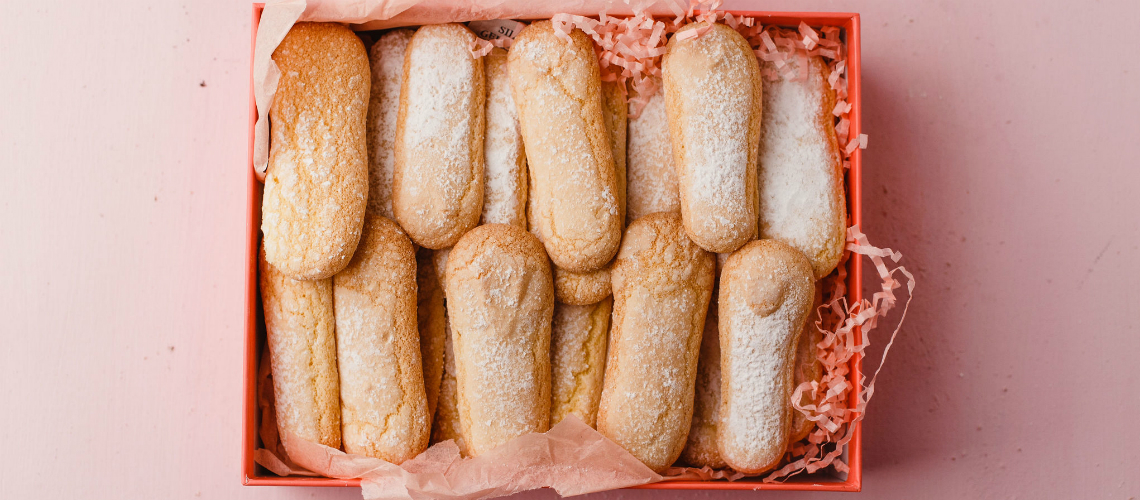 Rászitáljuk a keményítővel elkevert lisztet és óvatosan összeforgatjuk. A nyomózsákba tesszük és egymástól 4-5 centiméterre kinyomjuk a masszát. Meghintjük porcukorral és kb 12 perc alatt készre sütjük az első adagot. A többit is ugyanígy készítjük el. A tepsin hagyjuk kihűlni, majd légmentesen záródó dobozban tároljuk.
