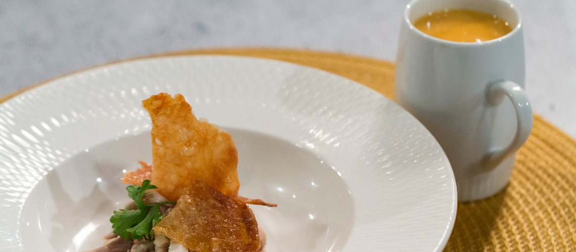 A csirkét kivesszük a sütőből, a kifőtt levet hozzáöntjük a rotyogó alapléhez, majd visszatesszük a csirkét a sütőbe.
