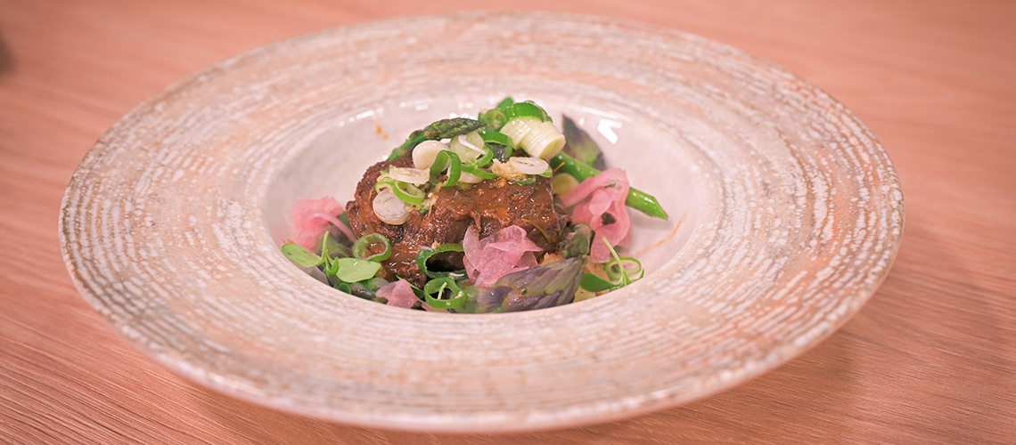 Ha úgy gondoljuk kész, óvatosan szedjük ki az omlós húst, a szószt szúrjuk le es redukáljuk vissza.