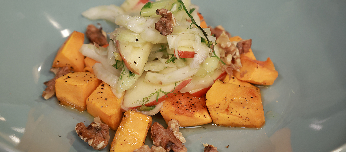 Citromos édeskömény saláta, sült sütőtökkel