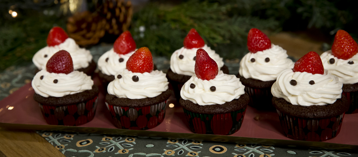 Vízgőz felett összeolvasztjuk a csokoládét és a vajat a brownie-hoz. Hozzákeverjük a tejszínt, a kókuszcukrot és a tojást, majd habosra verjük. A rizsliszthez hozzáadjuk a sütőport és a fahéjat, majd habverővel belehabarjuk a krémbe. Végül szórunk bele egy csipet sót. A tésztát muffinformákba töltjük, és 170 fokon 15-20 percig sütjük. Amíg sül a brownie, elkészítjük a krémet. Ehhez a tejszínt habbá verjük, majd hozzákeverjük a mascarponét, a mézet, és a citromlét. Néhány percre hűtőbe tesszük a krémet. A megsült és kihűlt brownie-ra a fehér krémból szakállat formálunk, a tetejére pedig friss epret teszünk, amely a Mikulás sapkája lesz.