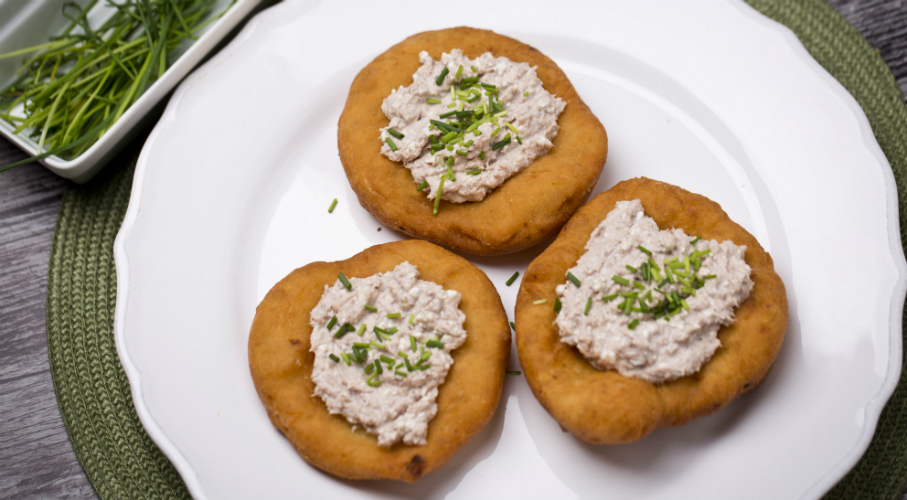 A felfuttatott élesztőt alaposan összedolgozzuk a folyadékkal, a liszttel és a főtt, reszelt burgonyával. Kelni hagyjuk. Ha megkelt, lisztezett kézzel kiszaggatjuk és megformázzuk, bő forró olajban néhány perc alatt pirosra sütjük. A túrót kevés tejföllel, darált sertéshússal összekeverünk, majd lángos tésztára halmozzuk. Aprított snidlinggel díszítjük.