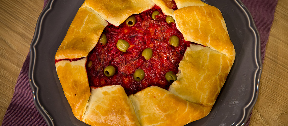 Reszeljük le a céklát, és keverjük össze az olajbogyóval, majd a sajttal.