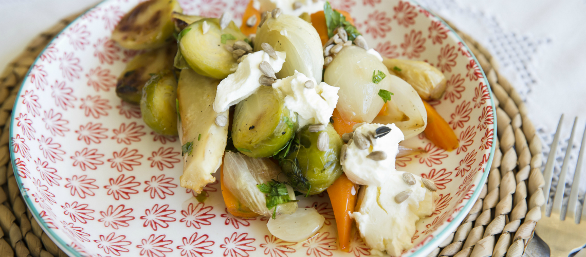 Hámozzunk meg minden zöldséget és vágjuk ketté, pirítsuk meg serpenyőben. Sütőpapíron, 150 fokon sütjük a zöldségeket, amíg megpuhulnak. Forró vajban karemellizáljuk a zöldségeket, tálalás előtt két kanál mézet teszünk rá, sózzuk, borsozzuk. Vágott petrezselyemmel és citromlével ízesítjük. Friss sajttal, pirított magokkal tálaljuk.