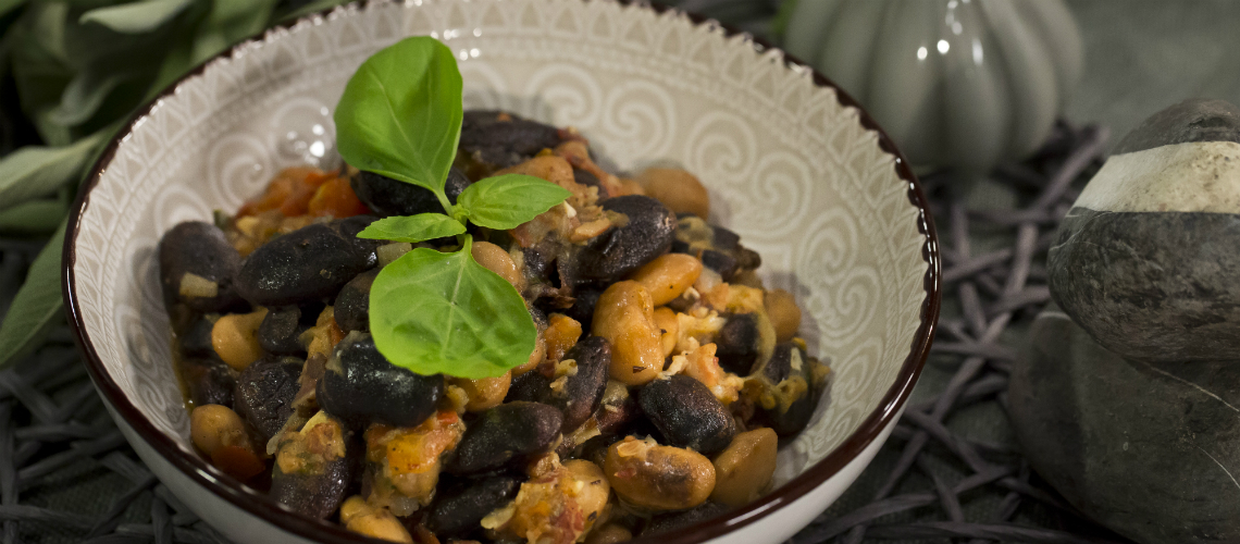 Kevés olívaolajban kockára vágott szalonnát pirítunk. Rádobjuk a szelelt vöröshagymát és fokhagymát. Megpároljuk, majd a főtt szárazbabbal egybepirítjuk. Sózzuk, friss, vágott bazsalikommal és borssal fűszerezzük. Tálalás előtt apró kockára vágott paradicsomot forgatunk hozzá.