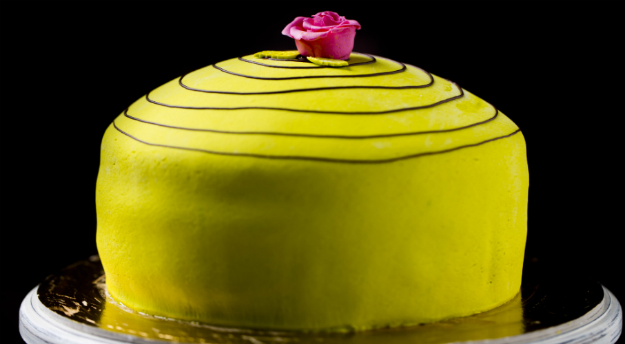 A piskótához a tojásokat felverjük a cukorral. Ebbe forgatjuk a sütőporos, keményítős lisztet, majd az olvasztott vajat. 22-24 cm-es formában megsütjük, majd hagyjuk kihűlni és vágjuk 3 lapba. 175 fokon 25-30 percig sütjük. A málnából, cukorból és dzsemfixből lekvárt főzünk. A krémhez a tejet feltesszük forrni, egy másik tálban pedig kikeverjük a tojássárgáját a cukorral és a vaníliamagokkal és a keményítővel. A forrásban levő tejet lassan a tojásos keverékhez öntjük és folyamatosan keverjük. Visszatesszük az edényben főzni, míg be nem sűrűsödik. A tűzről levéve belekeverjük a hideg vajkockákat. Hagyjuk kihűlni a töltéshez. A torta töltéséhez a 600 ml tejszínhabot felverjük. Az alsó piskótalapot vékonyan megkenjük a vaníliás krémmel, és a szélére habzsákból nyomunk egy peremet. A peremen belül eloszlatjuk a málnalekvárt. A tejszínhab felét beleforgatjuk a maradék vaníliás krémbe, és a tortát ezzel töltjük tovább. Az utolsó piskótalap tetejére csak tejszínhabot kenünk, kupolásan elkenve. Hagyományosan zöld marcipánborítást kap, a tetejére egy kis csokidíszítést és egy rózsaszín marcipánvirágot/rózsát. Újabb 1-1,5 dl tejszínből vert habbal a torta alját/szélét is ki lehet díszíteni egy csillagcsöves habzsák segítségével.