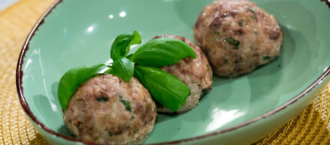 A darált húsokat összekeverjük. A húst fűszerezés előtt megsózzuk és kicsit állni hagyjuk hidegen, ettől később jobban összeáll. A darált császár szalonnát is hozzákeverjük. Keverünk bele egy kis olivaolajat, majd gazdagon fűszerezzük (fehér bors, curry, paprika, stb.), ha van, tegyünk bele friss zöldfűszert is (petrezselymet, bazsalikomot, lestyánt, akár egy kis tárkonyt). Ha marad, pár kanál húslevest is keverjünk a masszába, gazdagítani pedig tejszínnel kevert zsemlemorzsával lehet. Sokkal gyorsabb és egyszerűbb sütőben készíteni serpenyő helyett 180 fokon úgy, hogy egyenként megkenjük a gombócokat vajjal vagy olívaolajjal. Itt az a trükk, hogy körülbelül ujjnyi magasságig húslevest vagy valamilyen paradicsomalapú szószt öntünk a gombócok köré, ezt szépen magukba szívják, és nem száradnak ki.