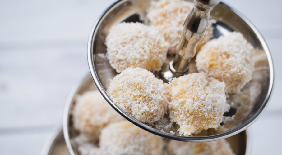 A tojásokat a cukorral kihabosítjuk, majd hozzáadjuk a zsiradékokat. A száraz hozzávalókat egyszerre keverjük bele, amíg össze nem áll a keksztészta. A masszából kis golyókat formázunk és egymástól kis távolságra elhelyezzük egy sütőpapírral bélelt tepsire. 180 fokos sütőben aranybarnára sütjük őket. (kb.10-12 perc) Amíg az első tepsi sül, elkészítjük a szirupot: a lekvárt és a narancsvirágvizet összemelegítjük. (Ha a lekvár darabos, akkor lepürésítjük vagy átszűrjük.) A kekszeket a meleg szirupba mártjuk, majd meghempergetjük a kókuszreszelékben. Lehet úgy is készíteni, hogy két kekszet összeragasztunk a szirupos lekvárral.