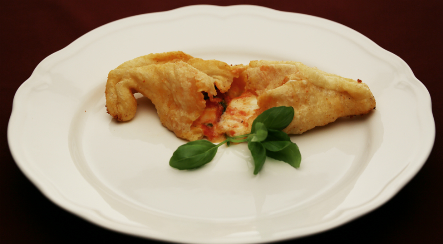 Először elkészítjük a paradicsomszószt. Egy serpenyőben felmelegítjük az olívaolajat, belerakjuk a paradicsom húsát, a bazsalikomot, és ízlés szerint megsózzuk. Kb. 15 percig főzzük. Közben egy tálban összekeverjük a lereszelt sajtokat: a mozzarellát, pecorinót, végül a ricottát. Elkészítjük a kelt tésztát az alábbiakkal: fehér liszt, hideg víz, só, és meleg tejben felfuttatott élesztő. Addig kelesztjük, amíg duplájára nem nő a tészta. Ha megkelt, vékonyra nyújtjuk, és kerek formákra szaggatjuk. A kerek tésztára az alábbi sorrendben rápakoljuk az alábbiakat: egy kevés sajtkeverék, egy kevés paradicsomszósz, ismét sajtkeverék, és a paradicsomszósszal zárjuk. Megvizezzük a tészta széleit, félhold formára összehajtjuk, a széleket összenyomjuk. Olajban megsütjük, melegen tálaljuk.