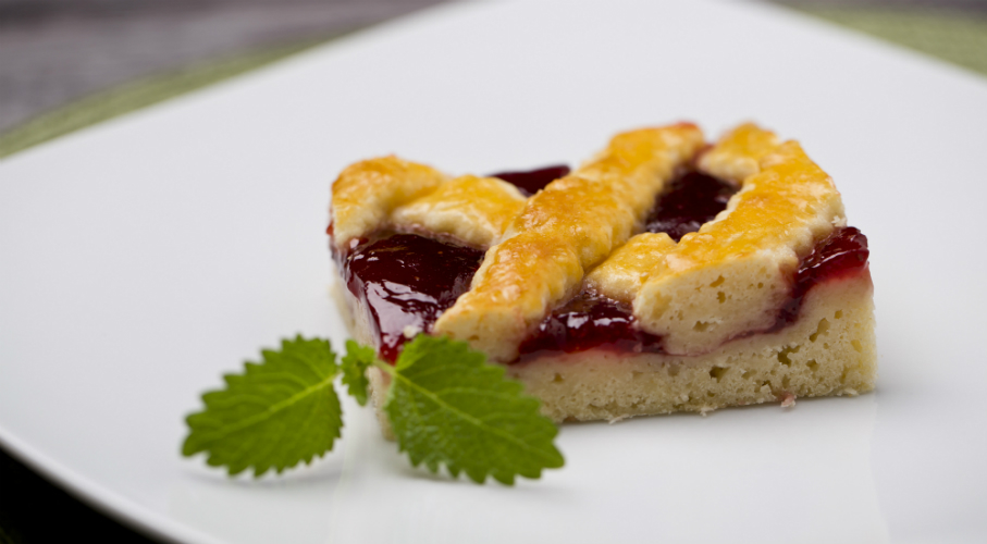 Először a tepsit kikenjük a zsiradékkal. Utána a deszkára szórjuk a lisztet, sütőport, porcukrot, vaníliás cukrot, csipetnyi sót, citromhéjat és összekeverjük. A száraz keverékben egy mélyedést készítünk, amibe beleütjük a tojást, hozzáadjuk a tejszínt és puha vajat. Összedolgozzuk a tésztát, műanyag fóliába csomagoljuk és 30 percig a hűtőben pihentetjük. Ezután a tésztát két részre osztjuk, 1/3-át félretesszük. A maradék 2/3-ot kinyújtjuk, vagy a tepsiben szétnyomkodjuk, hogy a tepsi alját teljesen befedje, és legyen pereme. A tésztát megkenjük lekvárral. Ezután a deszkát belisztezzük, és a kisebb tésztát kinyújtjuk, és csíkokat vágunk belőle. A tésztacsíkokat rácsosan a lekvárral bekent tésztára fektetjük. Végül bekenjük felvert tojássárgájával, és a 180 °C fokos sütőben 35 perc alatt aranybarnára sütjük.