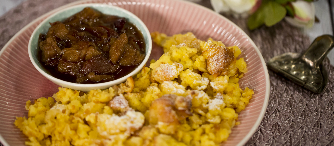 Ha elolvadt, beleöntjük a masszát és 18o fokon sütjük 2o-3o percig. Ha megemelkedett, fakanállal összetörjük, átforgatjuk a vajjal és visszatesszük sülni további 2o percre.
