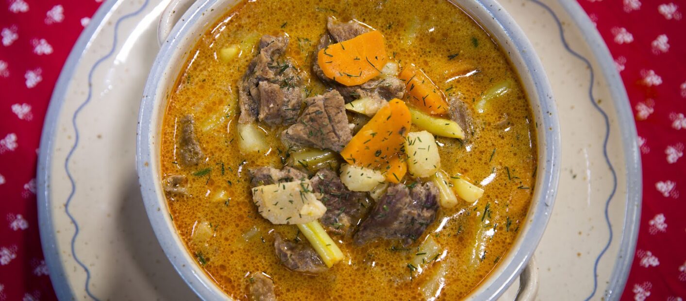 Újabb egy óra múltán elkészítjük a habarást. A lisztet a tejföllel, mustárral, citromlével összekeverjük, forró levessel apránként átmelegítjük, majd az egészet a levesre csurgatjuk, és hozzáadjuk a kaprot.