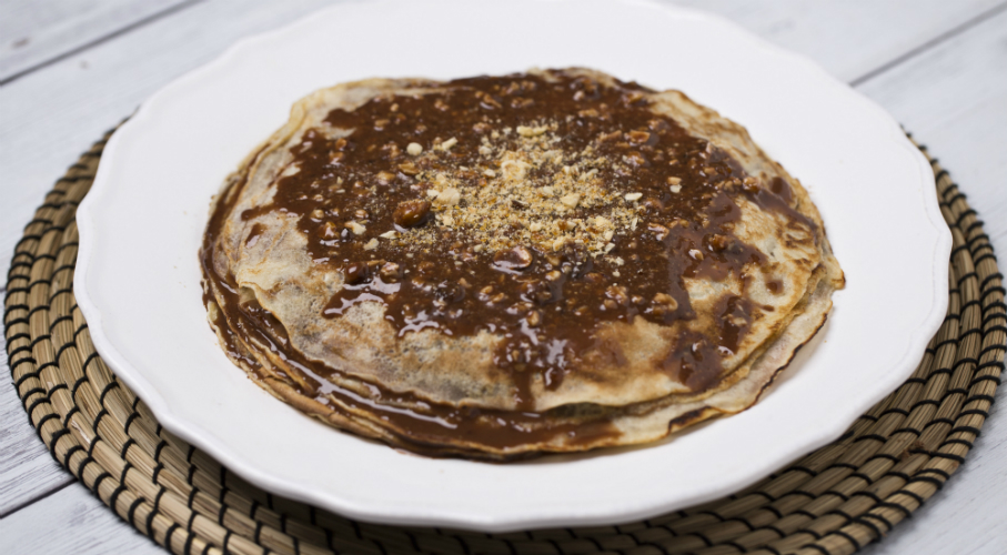 Lisztből, tojásból tejjel, kevés szódavízzel és olajjal palacsintatésztát készítünk. A palacsintákat kisütjük. A törökmogyorót száraz serpenyőben megpirítjuk, majd egy konyharuha segítségével ledörzsöljük a héját. A serpenyőben felolvasztjuk, karamellizáljuk a kristálycukrot és beleforgatjuk a pucolt mogyorókat.Egy szilikonlapra terítjük és megvárjuk, míg kihűl. A csokoládét feldaraboljuk és ráöntjük a felforralt tejszínt. Elkeverjük, hogy felolvadjon a csoki és belekeverjük az összetördelt és megdarált mogyorós grillázst. A kisütött palacsintákat a csokis-grillázsos krémmel megkenjük és egymásra rétegezzük.