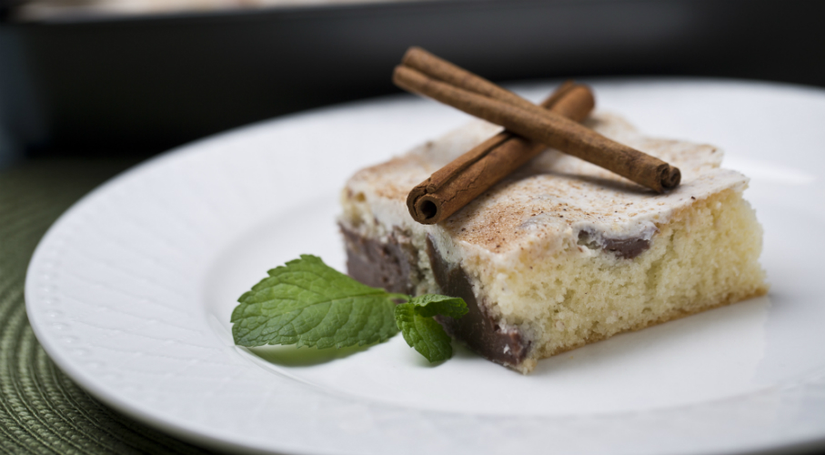 A tojások sárgájából a cukorral habot keverünk. Ezután hozzáadjuk a vizet, olajat, vaníliás cukrot, sütőport, és a réteslisztet. Kikeverjük a tésztát, majd a végén óvatosan beleforgatjuk a 4 tojásfehérjéből vert kemény habot. A tésztát a kikent és belisztezett tepsibe töltjük, és cikkcakkban ráöntjük a még forró pudingot. A sütit 180 °C fokra előmelegített sütőben tűpróbáig aranybarnára sütjük. A sütés után a még meleg sütit bekenjük a 2 tejföllel és megszórjuk fahéjas cukorral.