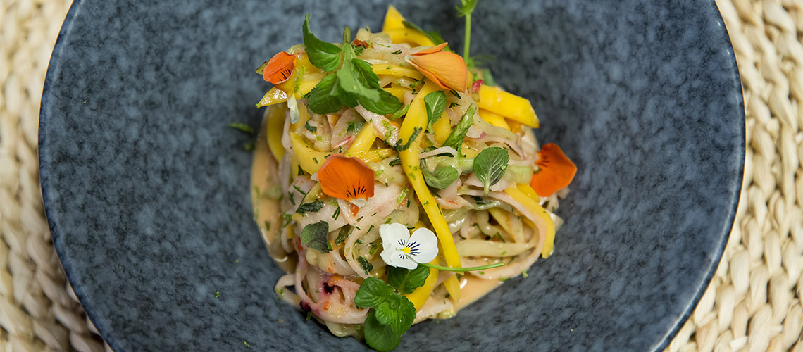 Keverjük össze a salottát, a retket szójaszósszal, a halszósszal és a fekete borssal, a majonézt és a harissa pépet, majd sóval, ecettel, borssal ízesítjük. Alternatívaként egy kis lime levet adhatunk hozzá. Az egészet összekeverjük és tisztított garnélarákkal tálaljuk.