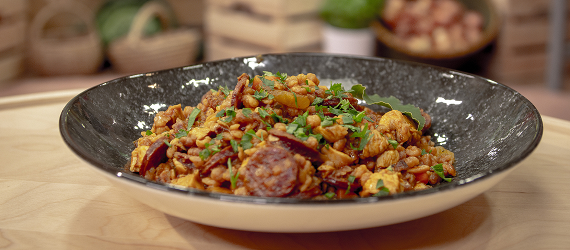 Amikor a víz kezd elforrni róla, fedjük le, és alacsony hőmérsékleten pároljuk addig, amíg a tarhonya megpuhul. Nem kell, hogy teljesen száraz legyen, a krumpli és a tarhonya úgyis felszívja azt a kicsit, ami marad.
