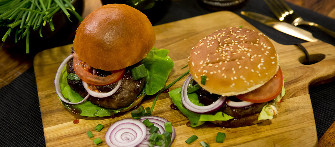 A szarvas hamburger húspogácsákat egy serpenyőben vagy grillen mindkét oldalukon aranybarnára sütjük, amíg át nem sülnek.