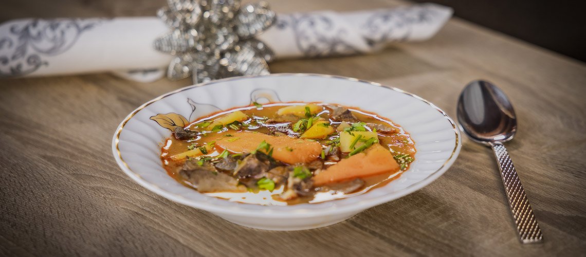 A tyúkot hideg vízben feltesszük főni, sózzuk, borsozzuk. Mikor felforrt, lehabozzuk, majd hozzáadjuk a leveszöldségeket. Amikor megfőttek a zöldségek, kiszedjük őket a lábosból. A rizst egy lábosban olajon megpirítjuk, és felöntjük egy nagy adag tyúk levesünk alaplével, és így főzzük tovább. Mikor majdnem megfőtt a rizs, hozzátesszük a levesben főtt, és apróra vágott zöldségeket, a főtt hús darabokat és végül összeforgatjuk egy nagy csokor vágott petrezselyemmel, majd visszatesszük a tűzre, és egyet forralunk rajta, majd elzárjuk.