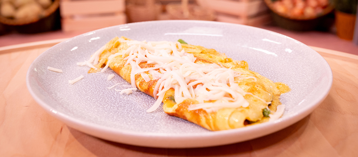 A leforrázott, tisztított spárgát kevés vaj és olívaolaj keverékében félpuhára sütjük. A tejszínnel felvert tojásokat sózzuk borsozzuk, majd vaj és olívaolaj keverékén mérsékelt hőfokon elkezdjük sütni, amíg a felső része már éppen csak folyós. Ráhalmozzuk a spárgát, meghintjük vágott petrezselyemmel és félbehajtjuk. Tálaláskor reszelt sajttal kínáljuk.
