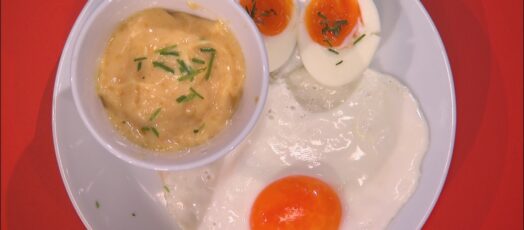 TOJÁSSÁRGÁJÁVALTÖLTÖTT RAVIOLI BARNÍTOTTT VAJJAL, PIRÍTOTT ZSÁLYALEVÉLLEL