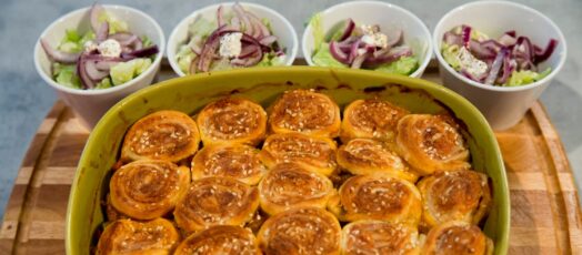 ZÖLDSÉGRAGU SZEZÁMOS TEKERCCSEL, SALÁTÁVAL