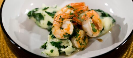 Faszénen sült garnéla, mángoldos vagy disznóparéjos krumplipürével