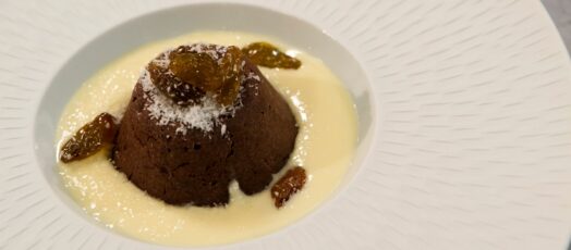 Csoki szuflé, kókuszos fehércsoki mártással, dinnyesalátával