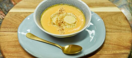 Sütőtökös – édesburgonyás krémleves ricottás raviolíval