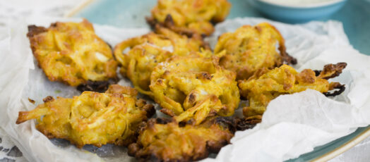 Sütőben sült, ropogós hagymapakora, zöld chutney-val