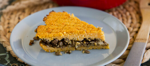 Sült kibbeh – édesburgonyás lepény fűszeres gombatöltelékkel