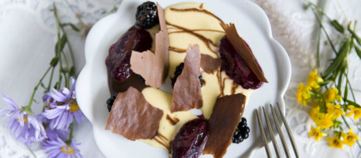 Kecskejoghurtos, mézes mascarpone-hab céklával, szederrel, keksszel