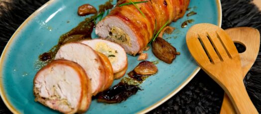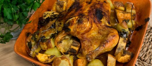 Fűszeres pisztrángsült citrommal, fehérboros mártással és pesztóval