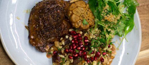 Fűszeres kacsasült zöldséges, datolyás kuszkusszal