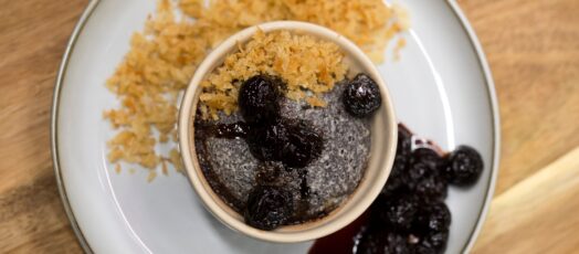 Mákfelfújt vajas pankó morzsával, portóis meggyel