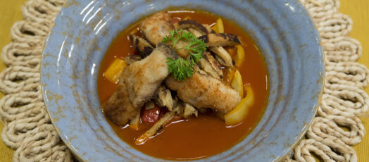 Paradicsomos-morzsás sült ponty, káposztás palacsintával